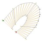The simplest form of cornering is to simply turn, with inclinations going around the turn. When making a hard corner, this results in stitches pivoting around the inside corner of the turn. If you’re going to turn this way, try beginning to ‘lean’ the stitches into the turn, and when coming out of the corner, give them some chance to ‘lean back up.’