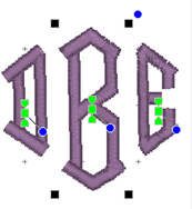 A Closer Look: You can manipulate text to fit virtually any kind of path using the handles for the text design as well as the individual letter and rest-of-line handles. The letters have additional control handles which display when the monogram is selected: