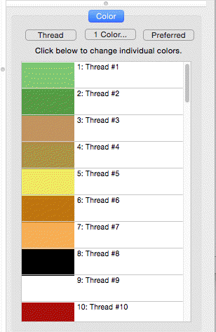 The ‘Thread…’ button allows you to change thread brands or to set a preferred brand by choosing a thread brand from the pop down list. Once a preferred brand is selected, you can easily change all the colors in any design to your preferred brand by clicking, “Use this as my preferred brand.”