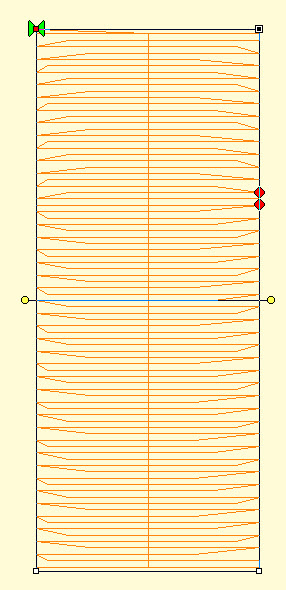 Left: A fill with the Exit bead midway in the fill. This causes the stitching to go from one side, then the other as shown in the center image, which is shown using the sewing simulator (in this image it has sewn below, and is now working its way down from the top).