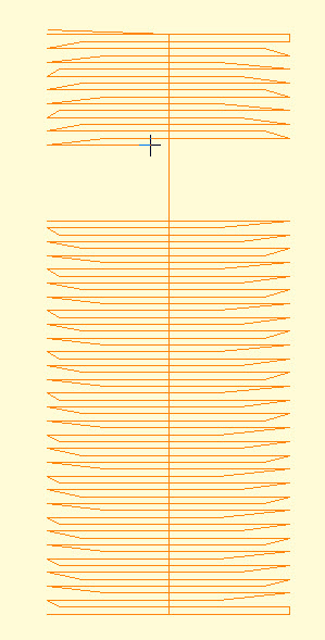 In the above image, notice that the inset of the darker-colored run is greater at the sides, and almost perfectly aligned at the top and bottom. This is because the fill will sew ‘narrower’ along the inclination – each line of stitching wants to pull the fabric in.