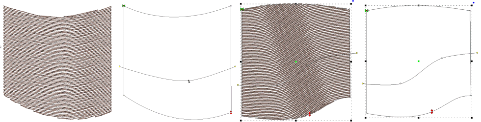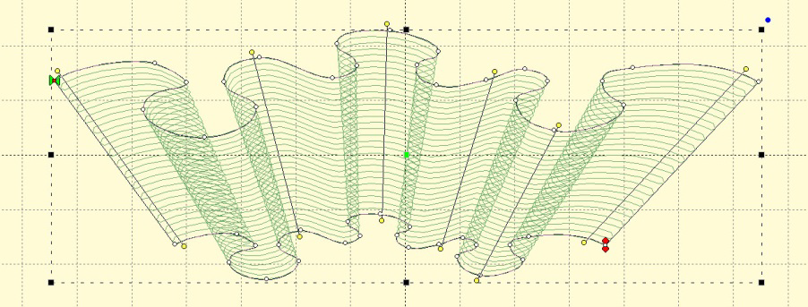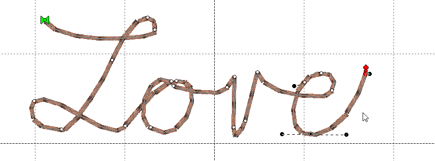 The stitches generated are usually kept in view so that you can see what they are doing. However, sometimes you want to see only the outlines, and hide the stitches. This is done with the ‘Stitch View’ toggle button on the tool pane or with the ‘n’ key. This is helpful especially when editing.