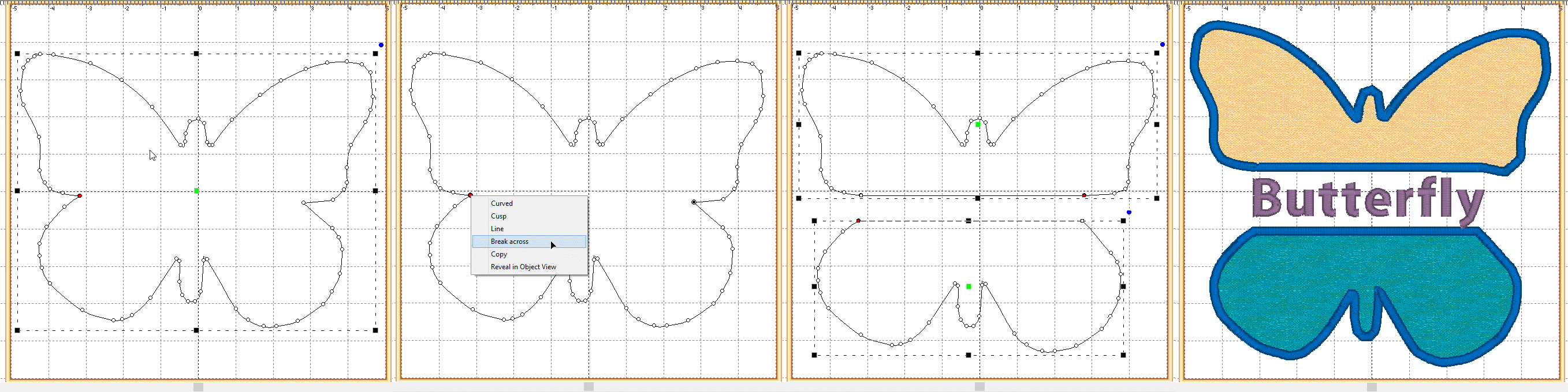 having already selected a closed-outline Line object, you enter the Break Mode.