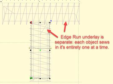 Here you can see the underlay for both objects has been sewn before any topstitching: