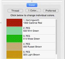 Design creators often need to utilize a palette of given colors. Sometimes these represent a customer’s job requirements, and other times it is merely a matter of needle assignment for the embroidery machine. You can create palettes at any time using the menu Utility->Threads… And you can choose to use any palette as you adjust the color properties.