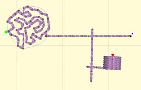 To set the entry and exit points for the branch, select at least the first object in the branch. The entry and exit handles can lie on the outline of the shape, or slightly outside it, which allows you to see them better (even though the stitching will always begin on the outline.)