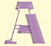 When a set of objects is branched, the sequence of those objects will be determined by the branch, not the order in which they were digitized. The exception to this is fully-digitized satin columns (not auto-columns). When a branch encounters a set of fully-digitized columns, it attempts to preserve the order of digitizing. The purpose of this is lettering. In most embroidery, the order of overlapping adjacent objects is not terribly important, but in lettering, this can be much more important as the eye is used to seeing things a certain way. For example, in the following letter ‘A’ the center horizontal bar should appear underneath both the left and right vertical strokes regardless of the branch exit: