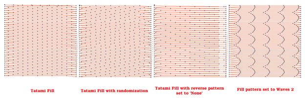 Note: There is also an option of using fill pattern “None” which will emulate a satin. This is for very small areas, where the stitches will not be excessively long, or for fills that are only going to be carved.