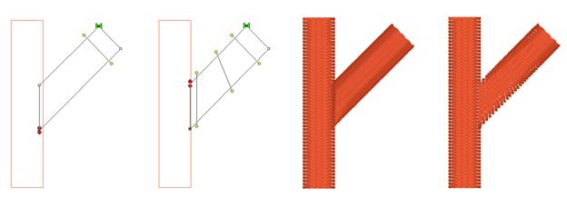 As with right angles, the use of an underlay object can provide better coverage, and make the joint easier to accomplish.