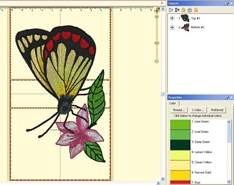 In the example above, the 100 x 172 PES hoop was chosen, and the design was centered in it. Then the menu item, Utility->Split Into Hoop was chosen. This created a new design page, represented by a new tab. In that page there are two designs, one for the top hoop section, and one for the bottom. Using ghost mode, we show the designs separately: