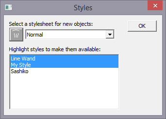 Notice that there are ‘My Style’ and ‘Line Wand’ available. Also, we had chosen ‘Normal’ as the Stylesheet to use as a current property set, so the Normal is there as well.