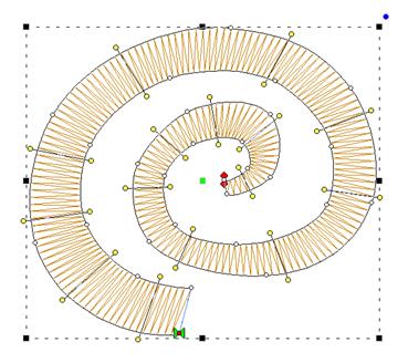 Now that we have covered outline basics, it’s time to discuss Satin Columns. Satin Columns have stitches that go across the shape from left to right forming a smooth, possibly curving, filled area. Satin columns are also referred to as “Turning angle fills” sometimes. Satins are generally the second most important stitch type you will use, after Runs.