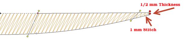 Sometimes your column will narrow down toward a point, and there is some relief that can be given here with inclinations. If you angle the stitching slightly as it comes into the point, the stitches stay a bit longer, while the column continues to narrow. This effect is known as chiseling, and it is effective.