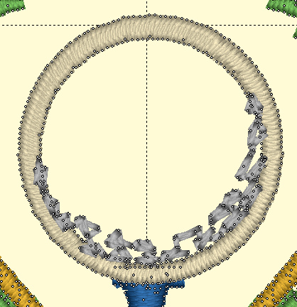 Here you can see that we’ve selected a range of stitches inside the golf ball, but we’ve skipped the satin stitches that go around the edge. If we hit delete on the keyboard, we can remove them!