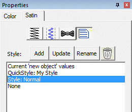 Styles allow for repeated use of properties on a given type of object. There is a style button on the top, right of each object property page. When an object has been assigned a style, that style will be highlighted in the style list, shown on the Style properties for the object. If an object was given a style, but then modified from that style, its style name will have an asterisk (*) following the style name.