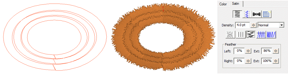 …But there is a problem. The design on the left is shown with 3D off so you can easily see the overlapping stitches. Once we use Flatten, as in the design on the right, we are closer to having something that will sew without damaging our needle or machine.