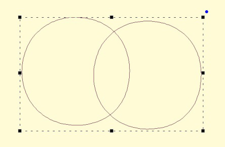 Two circles have been merged together on the left. Then the Union button has been used to create the third object, a ‘Union’. The image on the right shows the union object having been inflated so that it surrounds the original two circles.