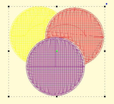 Automatic outlining can also be used to create an object hole. The purpose for this is for quilting designs. You can merge a design or create an interior design with objects, then make a new outline in some larger shape, for instance a quilt block, or your hoop. By adding a hole to that shape, in the form of the current stitches on the page, you can create a stipple, or an echo perhaps, that will surround those stitches and fill the block.