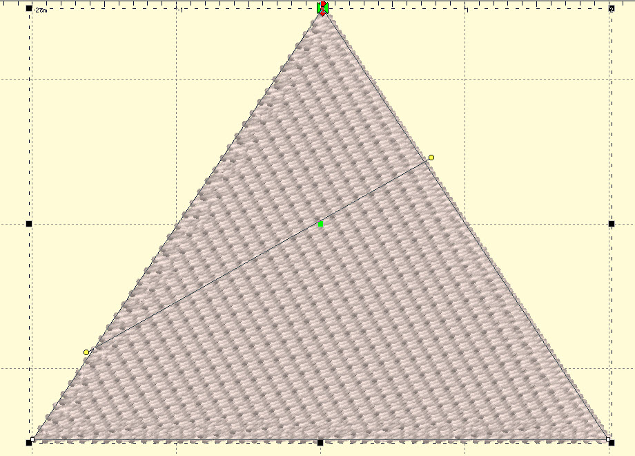 The stitches generated are usually kept in view so that you can see what they are doing. However, sometimes you want to see only the outlines, and hide the stitches. This is done with the ‘Stitch View’ toggle button on the tool pane or with the ‘n’ key. This is helpful especially when editing.
