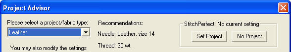 When you have chosen a project in the Project Advisor, the program lets you set that project on the design page so that the Stitch Perfect filters can use it.