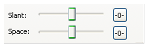 The slant of the monogram and the spacing of the monogram letters are controlled with the Slant and Space slider controls. If you use these controls and want to return the monogram to its default settings, simply click the zero control. This will restore the default setting. The Slant gives an italic effect to the monogram.