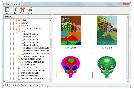 • The Size control of this dialog determines the preview size of the design thumbnails (the design does not have to be selected for the determined size). The 3D control shows the preview in 3D, i.e. it shows simulated stitches.