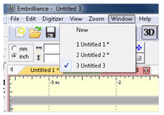 The Main View has a background, a hoop, and rulers along the side and, naturally, the designs you have placed in the Design Page.