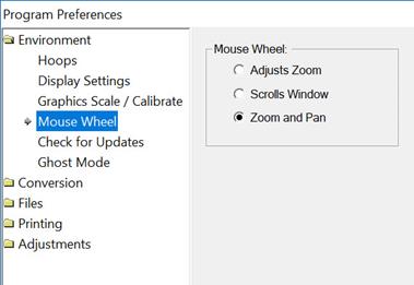 The Mouse Wheel can be used to zoom the Main View. It can also be used to scroll the page up and down. We recommend that you use the setting that allows for zooming as this is more useful to most users. The Zoom and Pan feature will center the view at the point of the cursor while zooming.