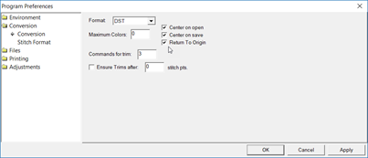 Designs can be saved into many different formats. The Conversion Preference allows you to adjust some parameters when you save in those different formats.