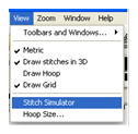The Stitch Simulator lets you see how the design will sew out by sewing on the screen. It is activated by clicking the Stitch Simulator tool in the View tool bar or selecting Stitch Simulator from the View menu.