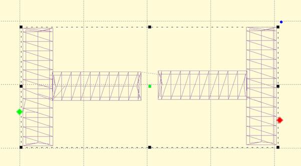 To set the entry and exit points for the branch, select at least the first object in the branch. The entry and exit handles can lie on the outline of the shape, or slightly outside it, which allows you to see them better (even though the stitching will always begin on the outline.)