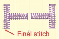 To accomplish this, the topstitching of the branch will be done in a reverse fashion to end up at the exit, as seen in the above image which shows the letter partially stitched.