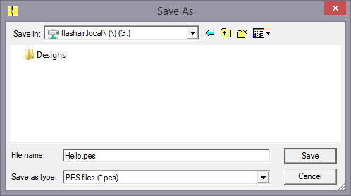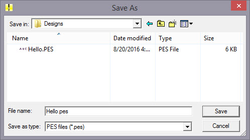 Double-click on ‘Designs’ to save into that folder and click ‘Save’.