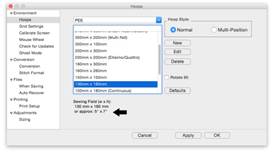 The hoop that you will view in the Main View is chosen for the Design Page using the Preferences Window. See the section under Preferences, called “Hoops.”