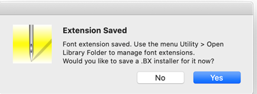 Publishing the extension file saves it for use by the system. When a font is loaded, any extensions found are loaded with it. Font extension files do have some additional data contained within them, so you do need to take the step of publishing. The file itself, however, is a regular .BE working file and it can be opened and edited like any other, even after publishing.