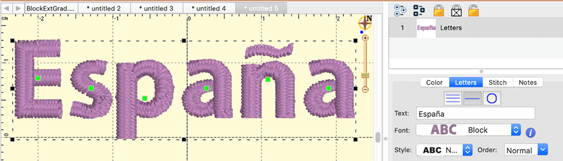To extend a font, you can create a new design and digitize a letter, mark or glyph. Name the design with the keyboard key that will be used to access the design. For instance, if you’re extending the font with the Spanish enye letter( ñ ) simply type that as the design name.