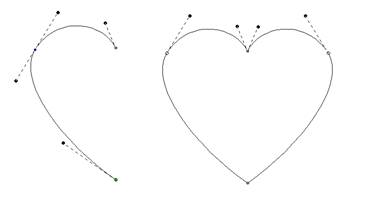 The alternative to a smooth curve is to have a node that comes ‘in’ from one direction, but leaves in another. This is a ‘cusp.’ Cusps are important, as they make the hard turns where curvy bits intersect – such as the top of a heart or in shapes of leaves, or almost anything in nature.