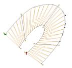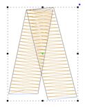 You’ll see that the cap angle is as ‘flat’ as it can be so that the stitching is smooth. For registration purposes, you may want to overlap the cap on top of the entry column. And the exiting column usually is best to be snug against the cap. In the illustration on the left, notice the slight overlap of the left column and the cap – barely a stitch is typical.