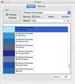 Design creators often need to utilize a palette of given colors. Sometimes these represent a customer’s job requirements, and other times it is merely a matter of needle assignment for the embroidery machine. You can create palettes at any time using the menu Utility->Threads… And you can choose to use any palette as you adjust the color properties.