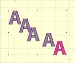 Distribution is different from alignment. Distribution places designs equidistant across a span. This is useful if you want to make regular patterns, such as a tiled design. If you would like items distributed across an area, move the first and last items to the outside areas that you want to fill. In this example, the (top, left) ‘A’ and the (bottom, right) ‘A’ make the design size. But notice how the ‘A’ designs between those are not placed regularly? Distribute will make those ‘A’s into an orderly row: