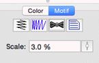 The Motif Scaling button allows you to incrementally adjust the size of each motif in the run. This makes for a decorative effect. If you increase the size, start with the motifs all at a regular or small size in the Height and Width fields. Then you can add a few percent of size for each pattern that is displayed. If you want to create your run with motifs decreasing in size, start with the motifs’ height and width as large as you will want, and decrease will make each successive pattern smaller. This may take some trial and error to get the result, but the effort is worth it, especially if you want to run ‘center-out’ and have motif run scaling in both directions.
