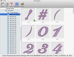 It is important that all the files for the font are together in one folder for easier and complete mapping. If you discover that some files are missing, for instance the “0” - “9” designs, you can open this font at a later time, choose Add Designs and resave your font.