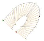 You’ll see that the cap angle is as ‘flat’ as it can be so that the stitching is smooth. For registration purposes, you may want to overlap the cap on top of the entry column. And the exiting column usually is best to be snug against the cap. In the illustration on the left, notice the slight overlap of the left column and the cap – barely a stitch is typical.