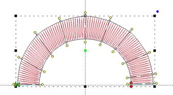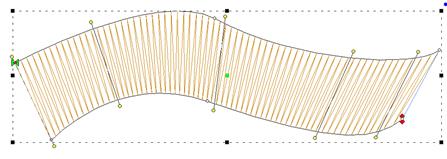 This method of creating satin columns creates the shape and the incline lines at the same time. Selecting this mode also forces you into the Point mode for entry, because the only way to create alternating points on the sides of the satin is by clicking.