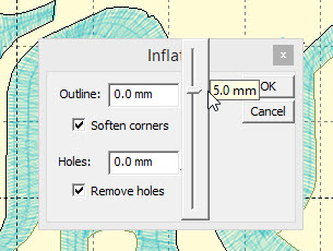 Clicking the Inflate button on the Tool Pane displays the Inflate dialog, which allows you to inflate selected objects and their holes as needed.