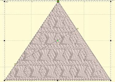 Areas filled with stitches such as Satin Columns and Fills can be given additional texture using Carving Lines. Carving lines are additional shapes that can be added to objects in a very similar manner to adding holes. Use the ‘Add Carving Line’ button on the Tool Pane to begin a carving line, and select the input method (usually Point Input) to begin drawing. Draw a path over the object.