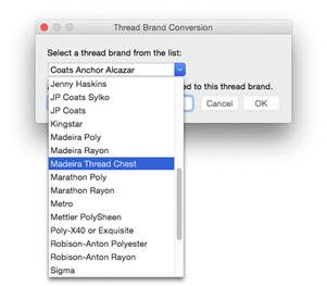 A thread brand can be selected on a per-design basis or can be made preferred.