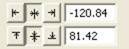 You can precisely position designs using these buttons. The three buttons on the (top, left) control the display of the x-axis position. There are Left, Center and Right, which means that when you have the Left button set, the display will be of the left edge of the design.