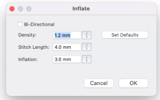 Knockdown normally stitches one direction, on a bias, but some users have asked for it to stitch both ways for additional flattening. This is what the Bi-Directional box is for. Alternately, the density can be increased to hold down in a tighter pattern.