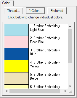 Design creators often need to utilize a palette of given colors. Sometimes these represent a customer’s job requirements, and other times it is merely a matter of needle assignment for the embroidery machine. You can create palettes at any time using the menu Utility->Threads… And you can choose to use any palette as you adjust the color properties.